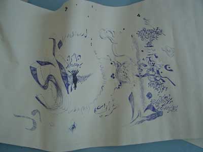 The Iranian artist Behrouz Rae, has been exploring Indian ink as a medium which he has never done before. He has also introduced colour into these works where normally he uses shades of black only.