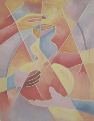 Bacena (her artist name), paints women and their lives, nature and its