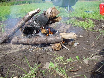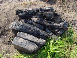 burning the wood for the charcoal