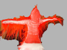 Eerst knipte ik enorm uitvergrote rode papavers, zwarte verfbuien en rode kussentjes met witte stippen. Zij werden met spelden aan de muur geprikt. Toen kwamen er insecten, planten, vogels en mensen. Muur en spelden volstaan dan niet meer. De beelden veroveren de ruimte en komen als mobiles in de lucht te hangen.