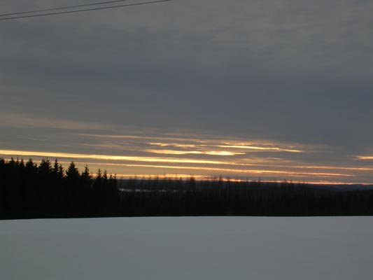 The organic shapes of the snow around of on the ground, when it is melting down. But also the small yellow skyline during the sunset.