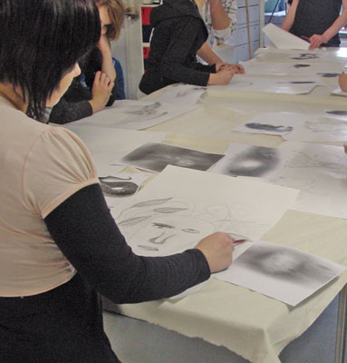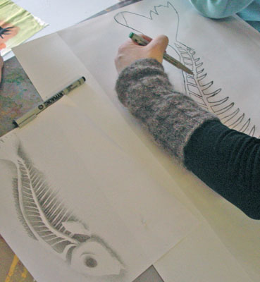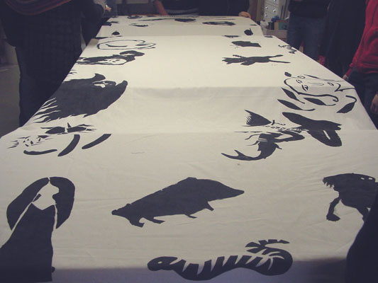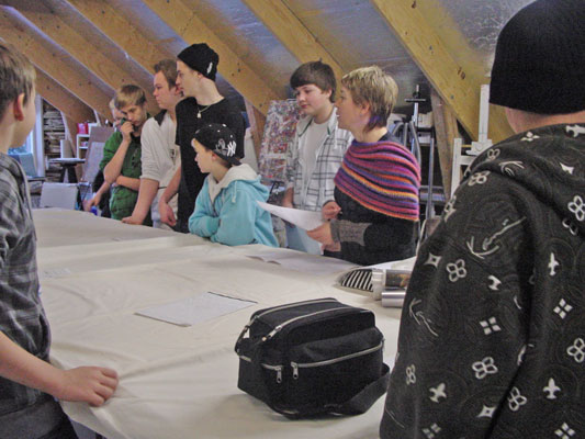 educationELF project Haukivuori school - printing workshopThe multi disciplinary elf project of Pirkko Vartio-Viljakainen has taken place with students of the secondary school in Haukivuori. In autumn 2009 different workshops has taken place. In the school Pirkko has introduced the phenomenon of elves to the youth and through information and stories of their grandparents it was possible to write some texts. During this period the students have also made drawings about elves to prepare a printing workshop in Saksala ArtRadius.During the printing workshop the students have prepared and printed a piece of fabric with different mysterious creatures.